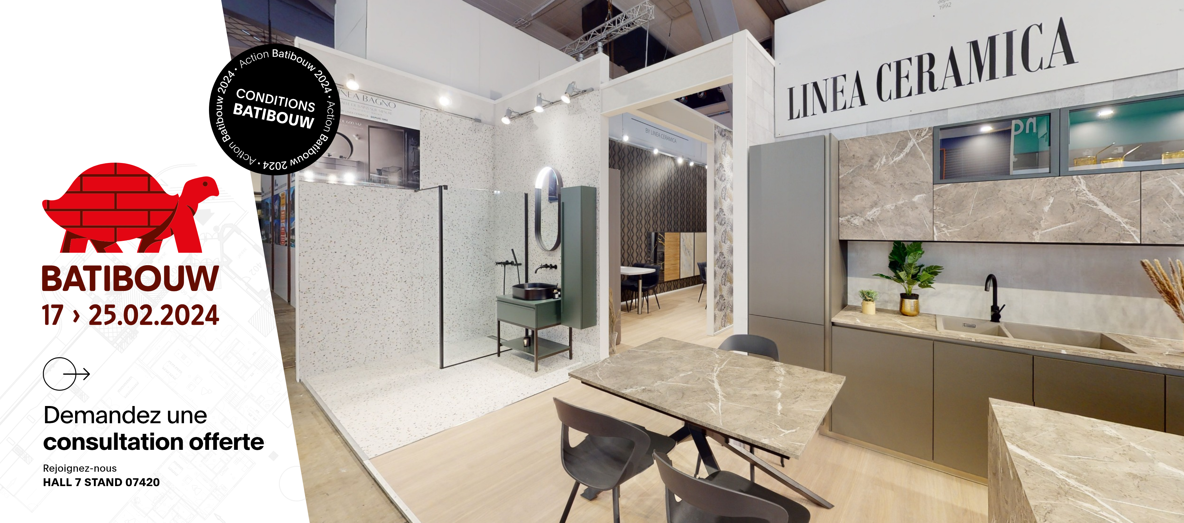 Notre collaboration avec Linea Ceramica débute en octobre 2020 à Namur Expo. Monsieur Baleste architecte intérieur nous accueille.